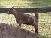 Minnie the goat, guarding a dirt pile in the pasture. |