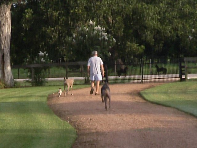 Harmon, Teddy Bear, and Tiza guarding Dave on his way to pick