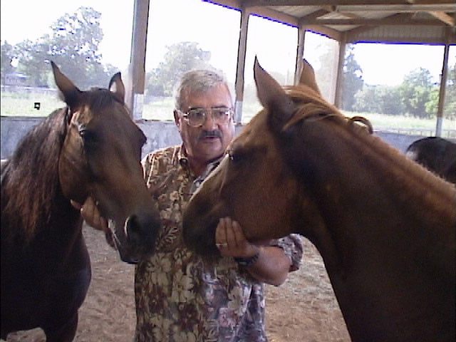 Dave at home in the arena with Electronica and Contess, two