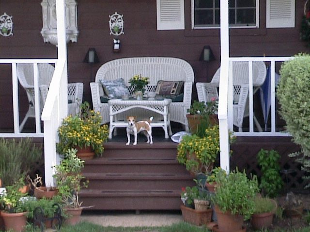 Tiza guarding the back porch. |